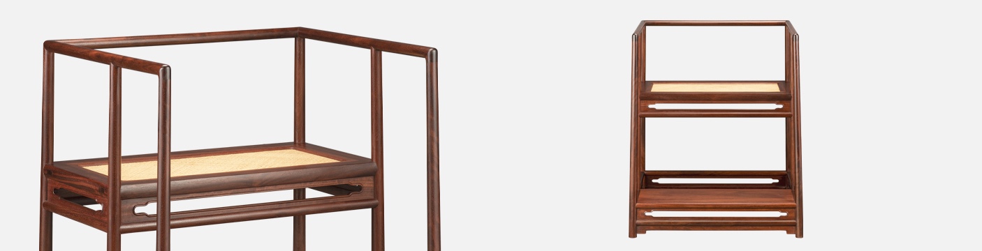 此椅脚踏与椅子连为一体,在遗留实物中很少见,画中亦不多见。结构方正,疏朗有致。