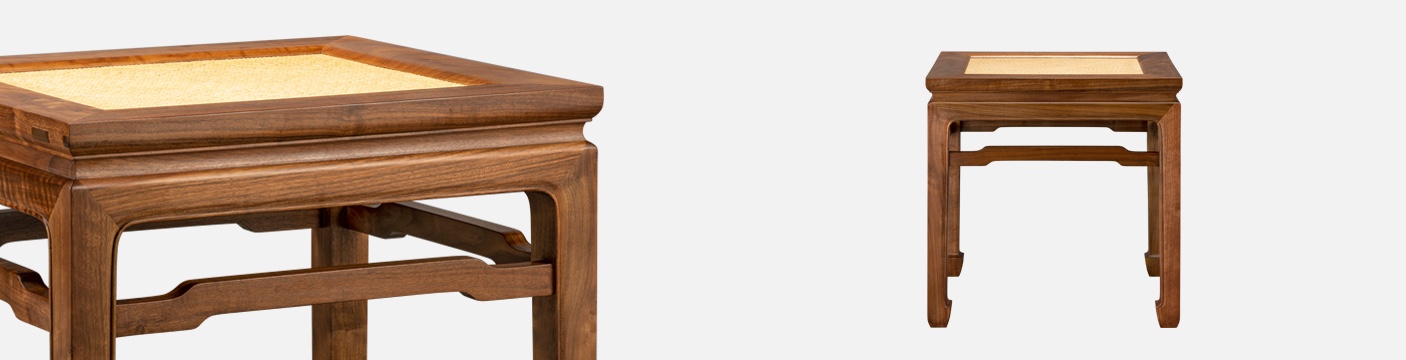 小巧可爱,经典的束腰马蹄足结构;但罗锅枨不与腿足齐头碰,而略收于内,表面起鼓,是微妙的变化。
